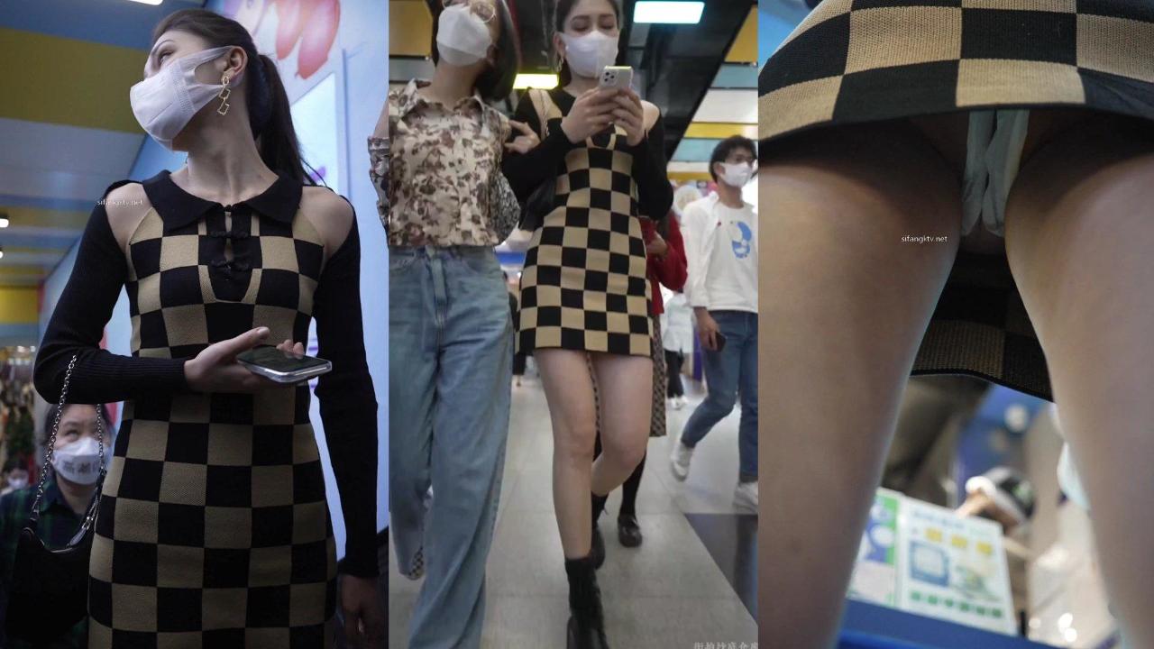 包臀裙长腿美女排队买奶茶..前后CD窄内露毛
